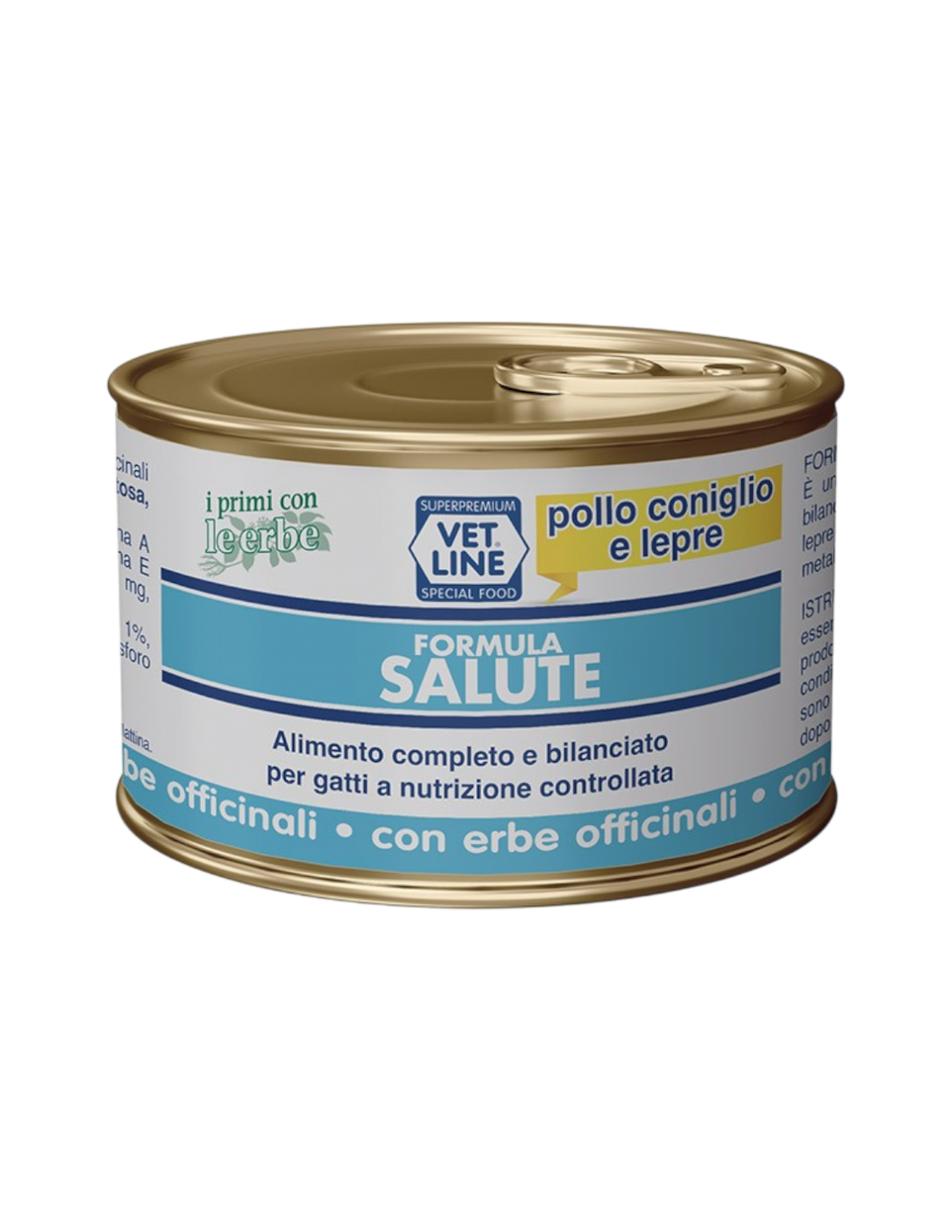 La formula Salute VET LINE umido è stata realizzata secondo i principi olistici utilizzando carne bianca (Pollo, Coniglio) ad alto valore proteico e Lepre.