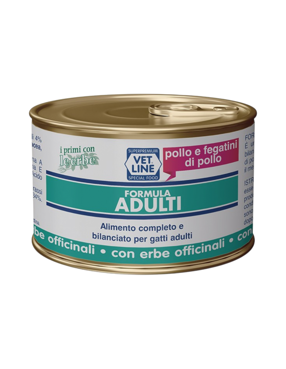 È un alimento per gatti, completo e bilanciato, realizzato con Pollo, Fegatini di Pollo ed erbe officinali che ottimizzano il metabolismo del gatto adulto.