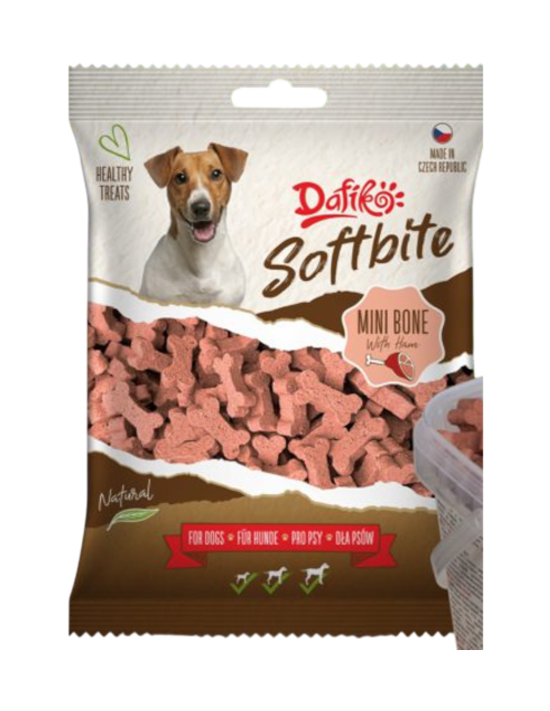 DESCRIZIONE: cibo complementare con prosciutto per cani sotto forma di bocconcino.