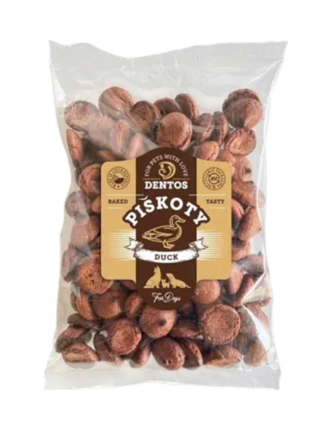 DESCRIZIONE: cibo complementare con anatra per cani sotto forma di bocconcino cotti al forno.