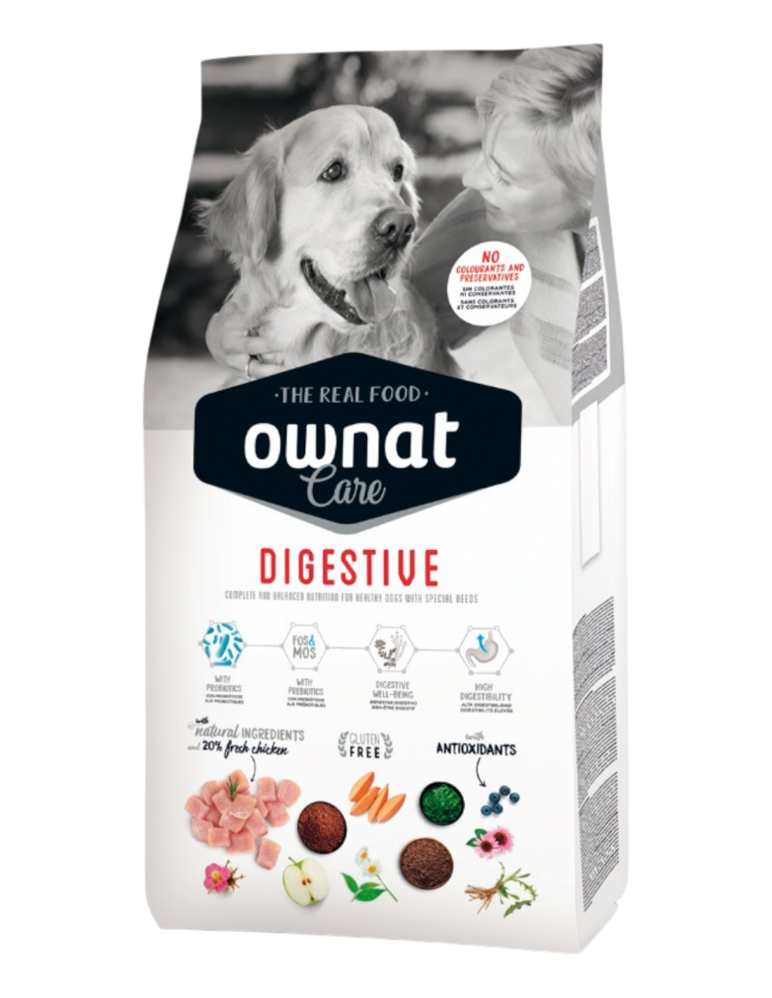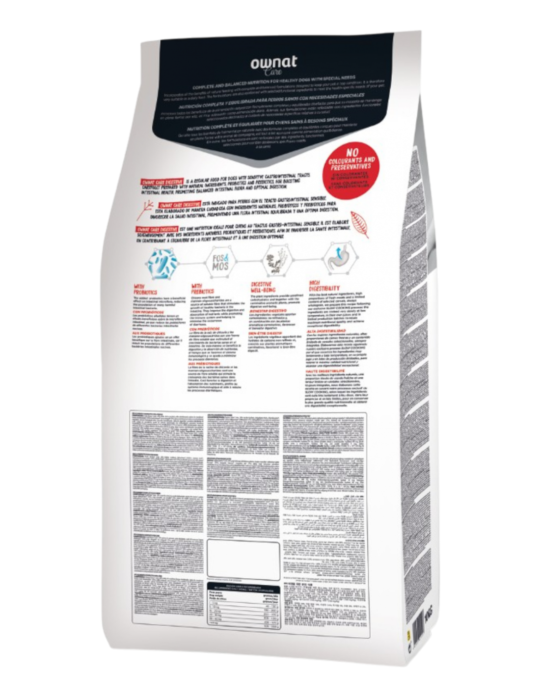 OWNAT CARE DIGESTIVE è Adatto a cani con tratto gastrointestinale sensibile. È Realizzato con cura con ingredienti naturali, probiotici e prebiotici per sostenere la salute dell'intestino, promuovendo una salute intestinale equilibrato e digestione ottimale.