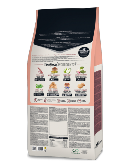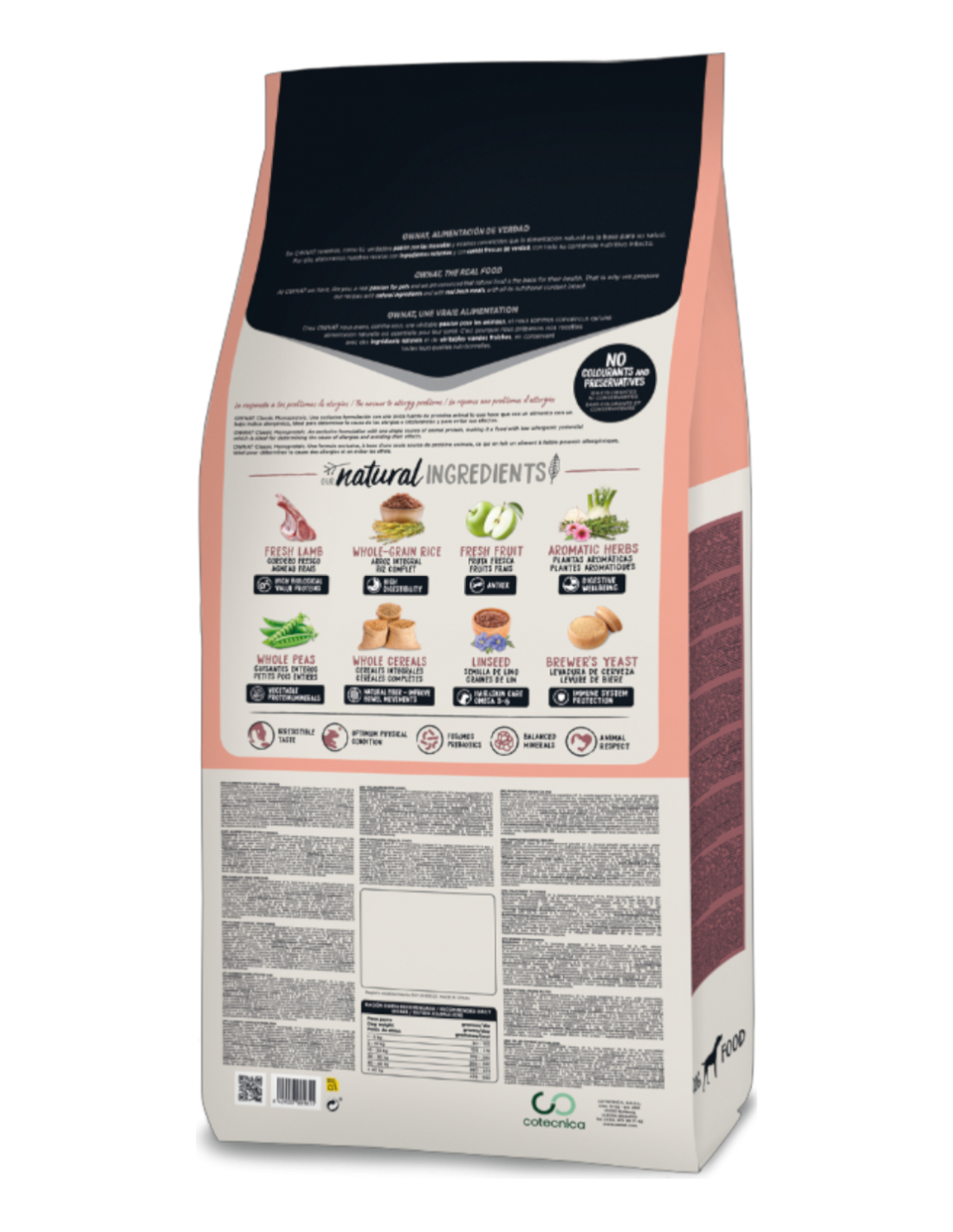 Una ricetta realizzata con ingredienti naturali di altissima qualità ed esclusivamente con agnello come unica fonte di proteine animali che lo rende un’ottima alternativa per cani con problemi di allergia.