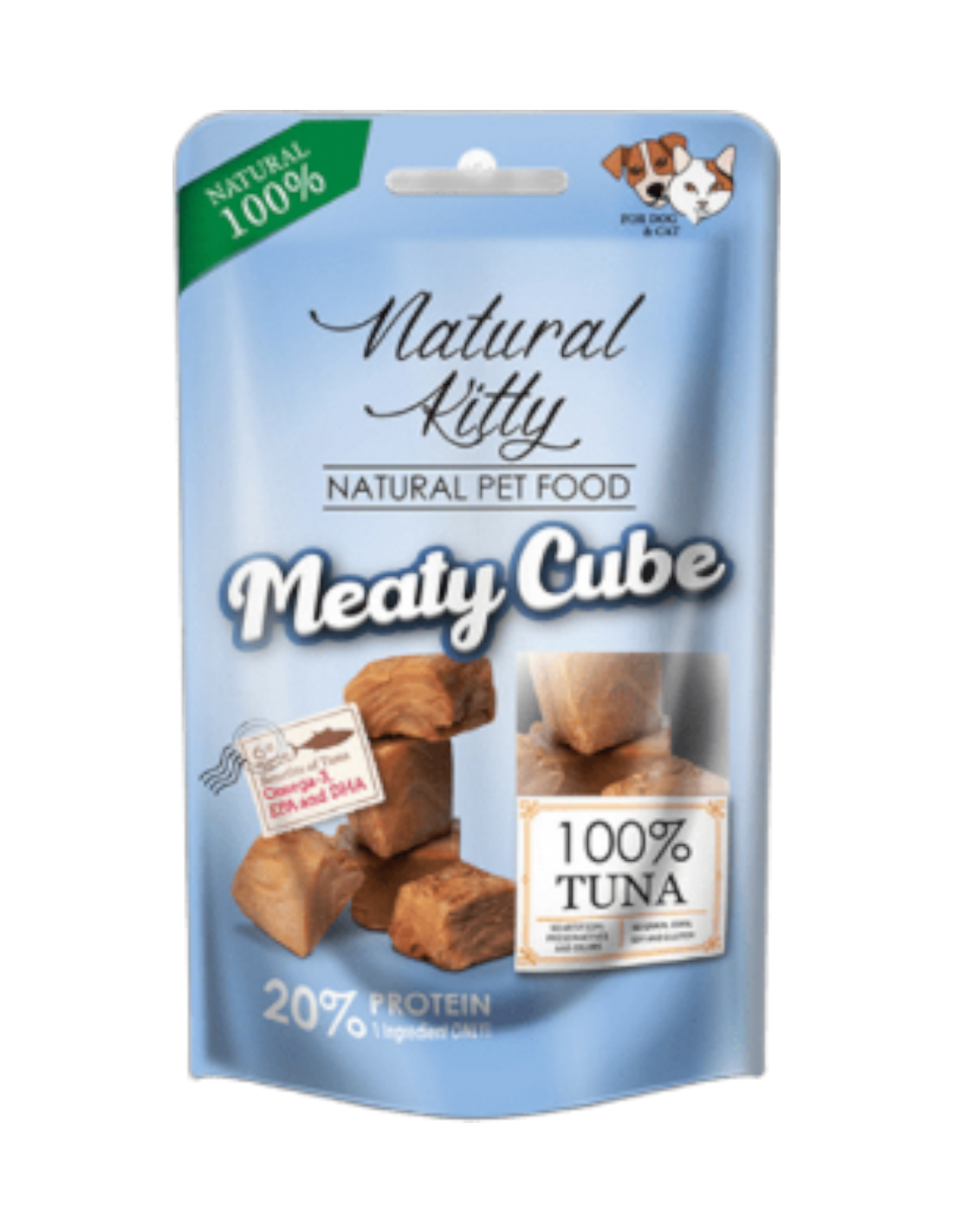 Il tonno al 100% proviene da vero tonno, quindi cotto a vapore per migliorare il gusto e l'aroma che è favorevole agli animali domestici. Natural Kitty Meaty Cube è ben cotto e preparato per preservare l'ottimo gusto e gli importanti nutrienti. È la migliore ricompensa giornaliera per i tuoi animali domestici. Puoi nutrire i tuoi animali domestici ogni giorno come ricompensa o dolcetto o nutrire come pasto leggero, o servire come pasto principale complementare.